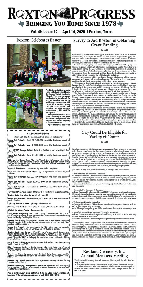 Vicky Renee’ Bailey, 69 of Roxton, passed away March 30, 2026 at her home. Cremation arrangements...